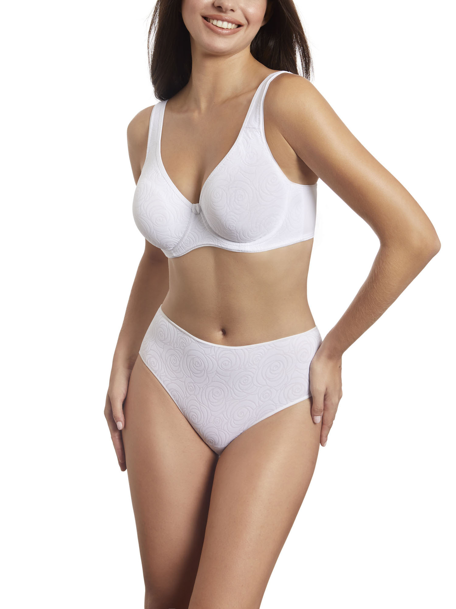 Sujetador con aros, sin relleno. Fabricado con un elegante tejido estampado y un sutil escote en forma de V.