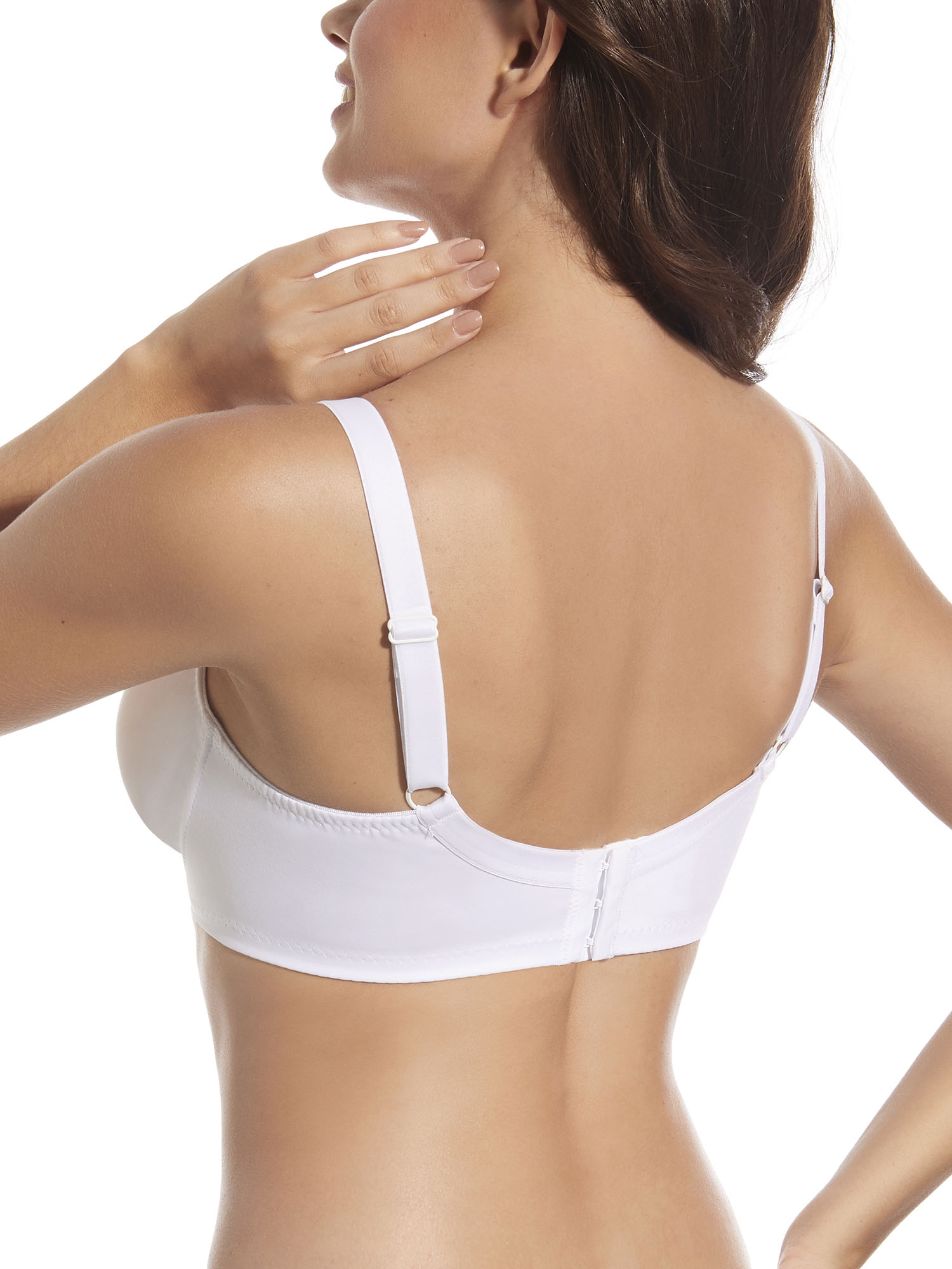 Классический из формованной микрофибры, на косточках, бретели украшены гипюром. Усиленная боковая поддержка.